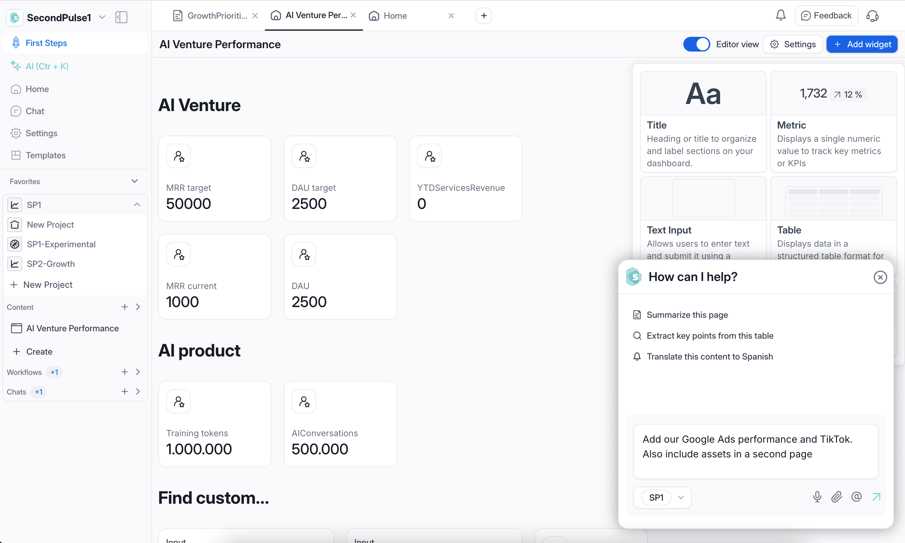 You could track metrics from different tools and centralize it in one place - our agent helps to connect all the data fastly.